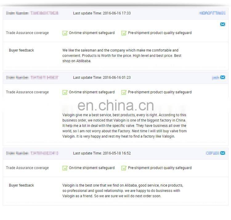 Q1. Can I have a sample order for valve? A: Yes, we welcome sample order to test and check quality.Mixed samples are acceptable. Q3. Do you have any MOQ limit for valve order? A: Low MOQ, 1pc for sample checking is available Q4. How do you ship the goods and how long does it take to arrive? A: We usually ship by sea. It usually takes 30 days to arrive. Airline shipping also optional. Q5. How to proceed an order for valve? A: Firstly let us know your requirements or application. Secondly We quote according to your requirements or our suggestions. Thirdly customer confirms the samples and places deposit for formal order. Fourthly We arrange the production. Q6: Do you offer guarantee for the products? A: Yes, we offer 10 years warranty to our products. | |
