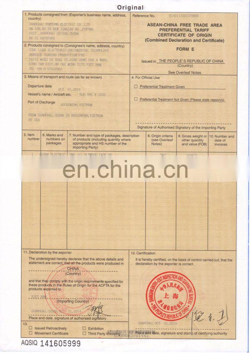China Electric (Shanghai) Co., Ltd. is established since 1960s with over 8-year experience in export in Alibaba. We locate in Shanghai and has more than 1000 employees. Its factory is about 30,000~50,000 square meters. With rich experience in manufacturing and exploring motors, the company has got ISO 9001:2000 Management Certification, CE Certificate for European Union, UL and CSA Certificate for North America, GOST Certificate for Russia and SONCAP Certificate for Nigeria for our motors.