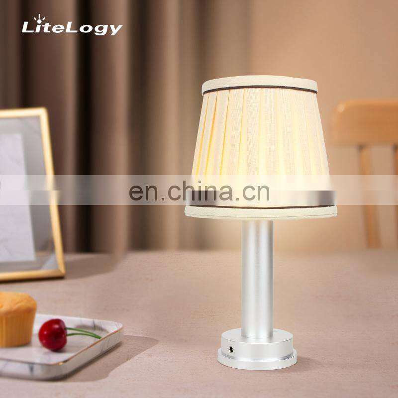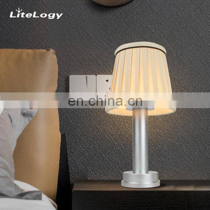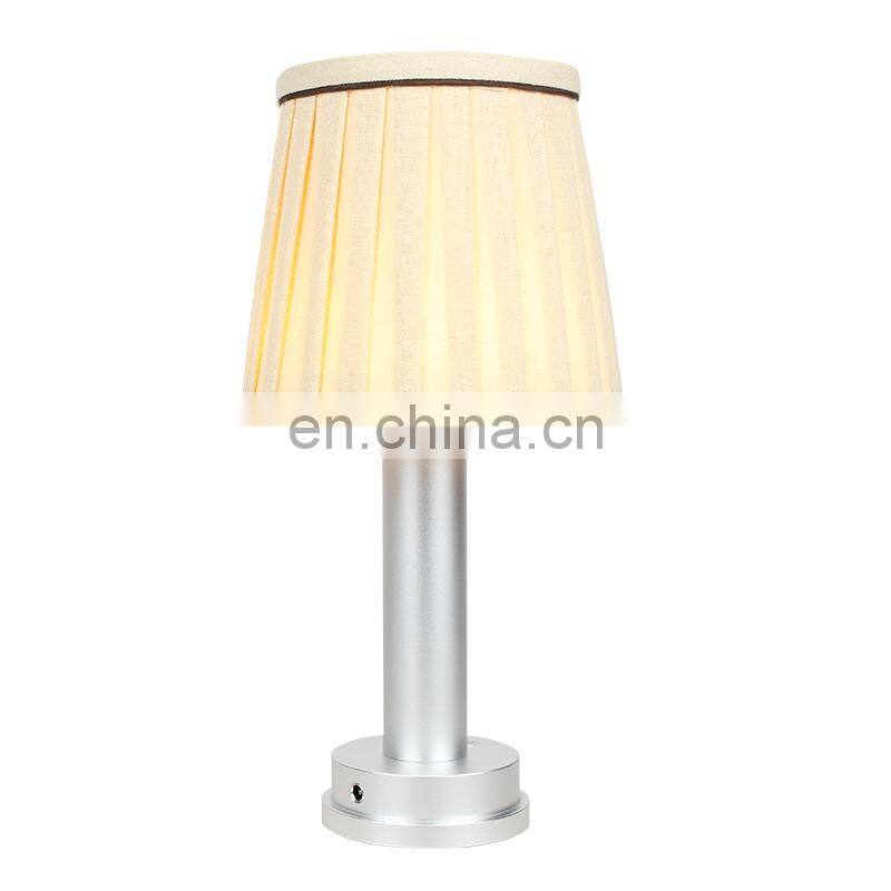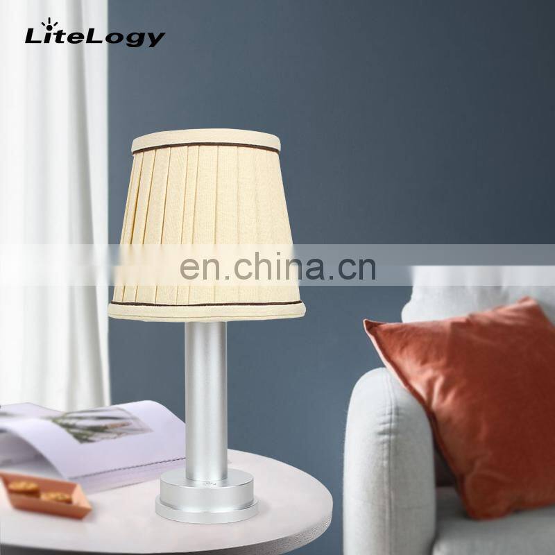 Hotel Bedside Desk Lamp Supplier Metal Base Fabric Shade Decorative Cordless Table Desk Lamp
