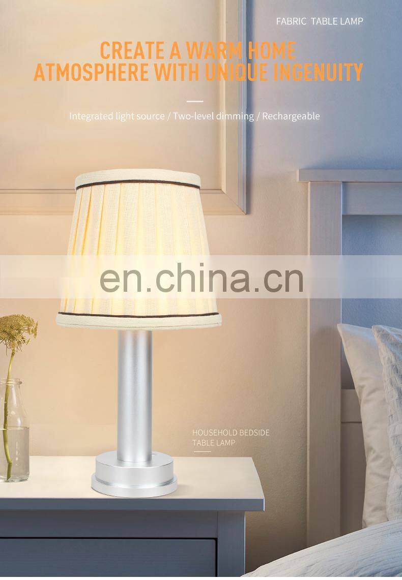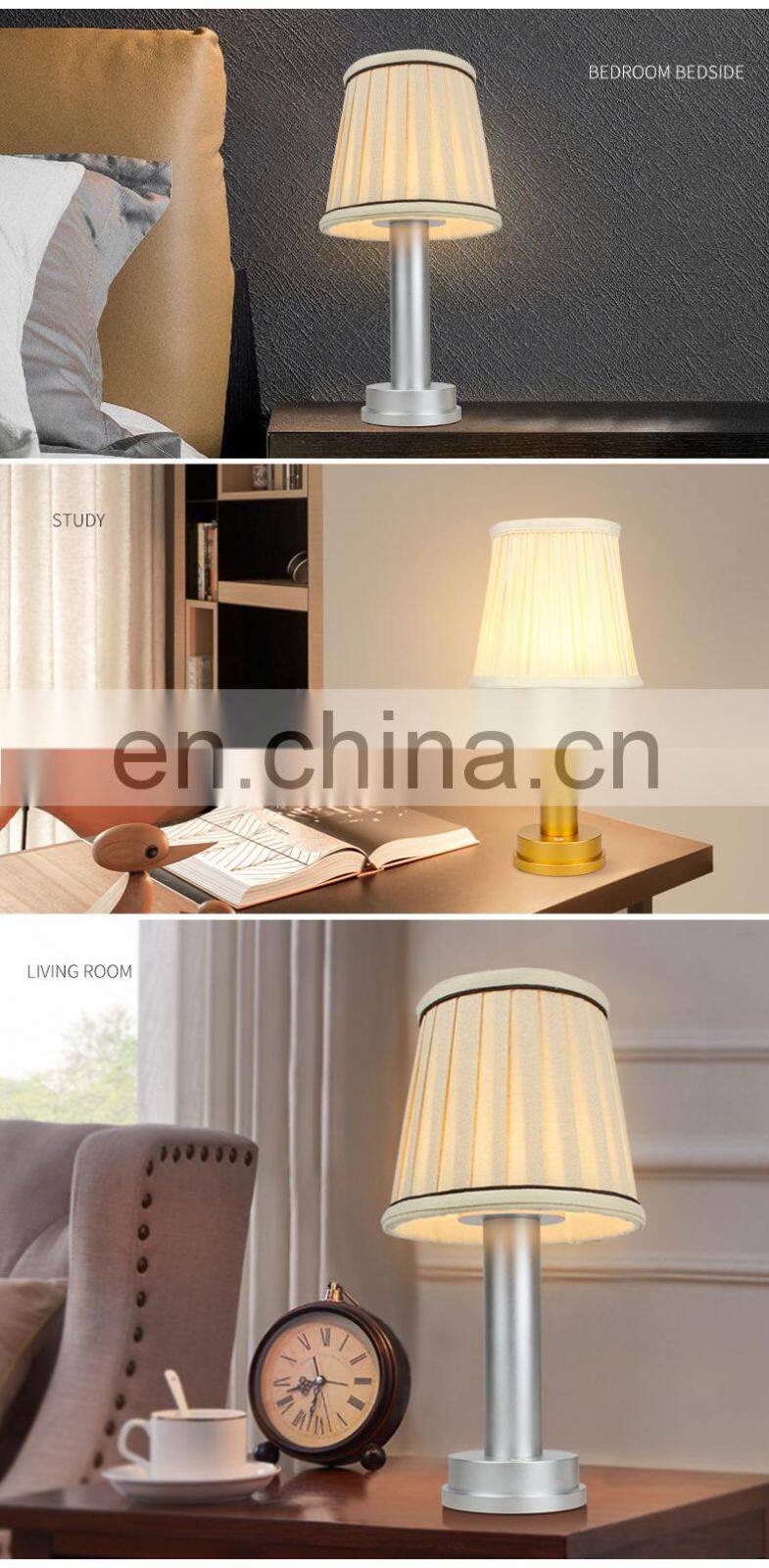 Hotel Bedside Desk Lamp Supplier Metal Base Fabric Shade Decorative Cordless Table Desk Lamp