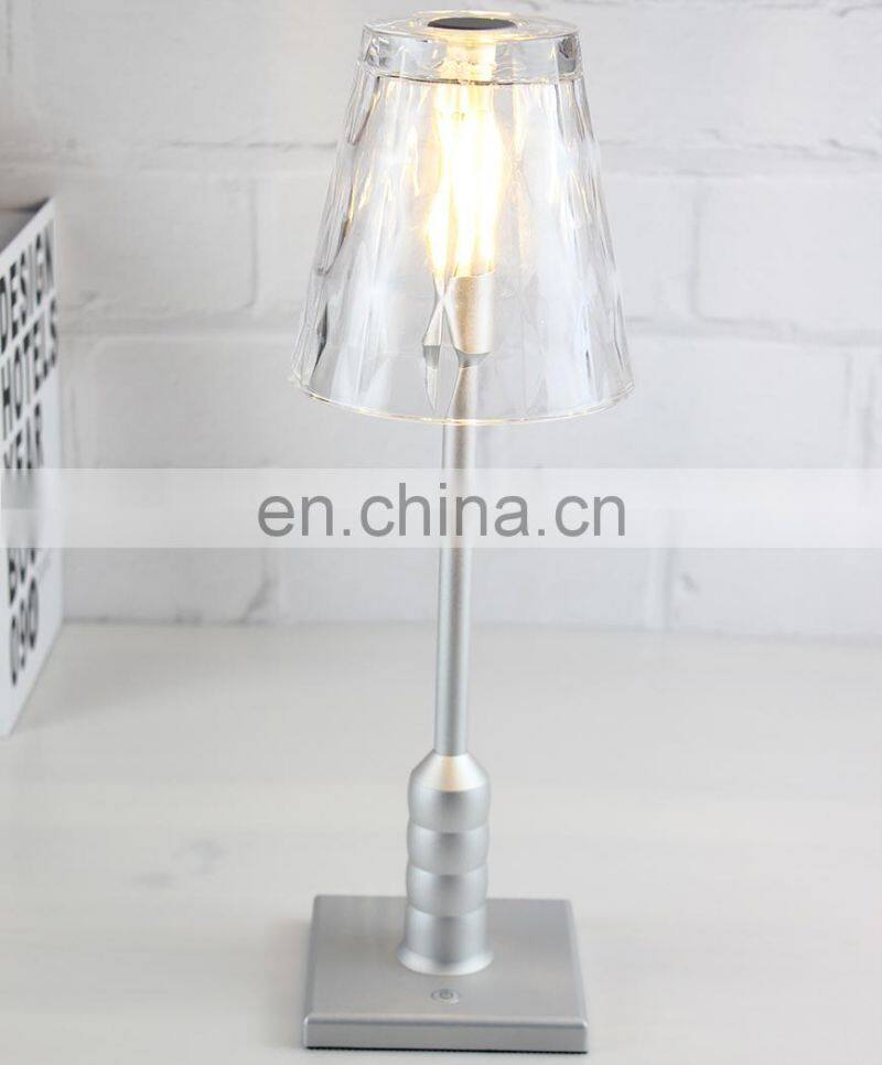 2021 Hot Sell Hotel Aluminium Acrylic Table Lamp Custom Shade Lamp Rechargeable Led Desk Lamp