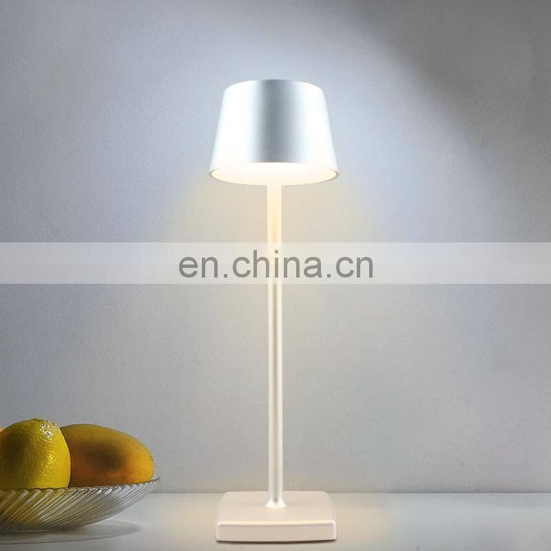 Modern Designer White Elegant Led Table Light Cordless Rechargeable Desk Lamp for Hotel or Restaurant