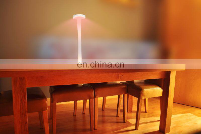Feature | White(accept colors customized) and 48 pcs Warm white LEDs Application in Residential +Hotel+Restaurant+Office+KTV+BAR Rechargeable 4400mAh Lithium Battery Powered Lighting Functions Cordless Restaurant Lamp/Accept logo customized/150 LM Input 5V USB cord-MICRO/Touch Switch Dimming /Waterproof IP54 | ||||||