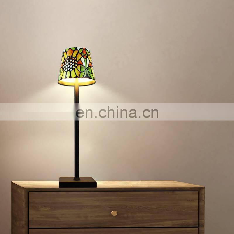Waterproof IP54 LED Rechargeable Battery Outdoor Table Lamp American Style Hotel Decorative Tiffany Lamps