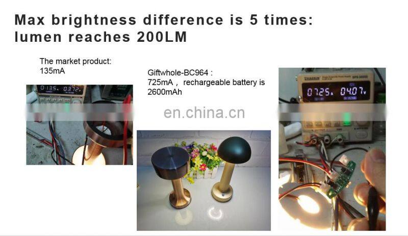 Giftwhole Design Waterproof IP54 Aluminum 3.5W 5200mAh Led Rechargeable Cordless Table Lamp for Restaurant