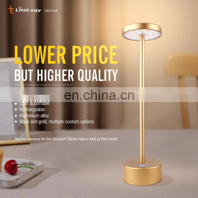 Adjustable Brightness Bedroom Table Lamp Aluminium USB Rechargeable Battery LED Cordless Restaurant Modern Table Light Lamps