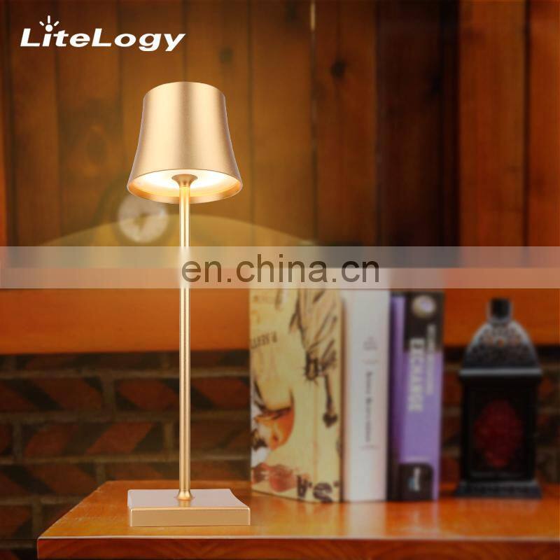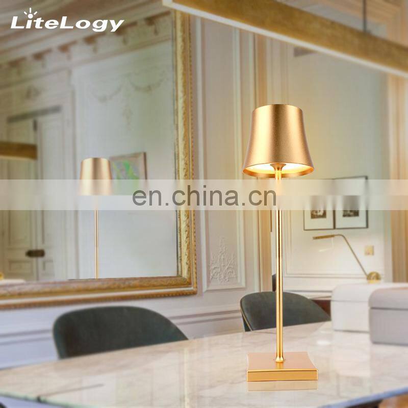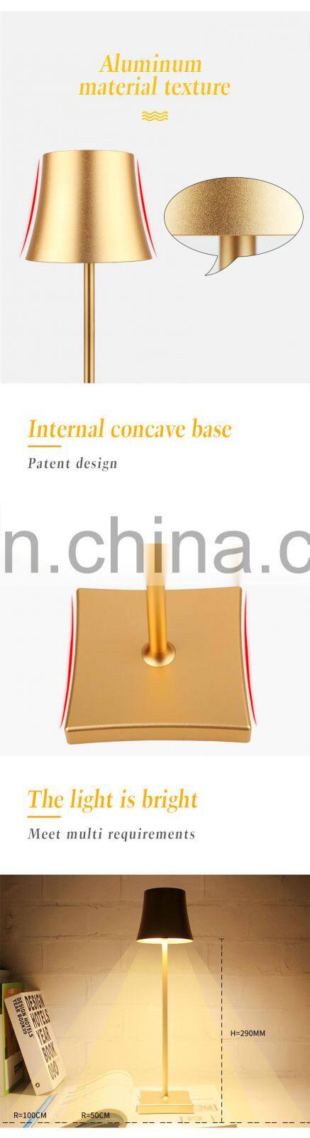 Shenzhen Poldina LED Aluminum Rechargeable Cordless Restaurant Wireless Table Lamp for Hotel