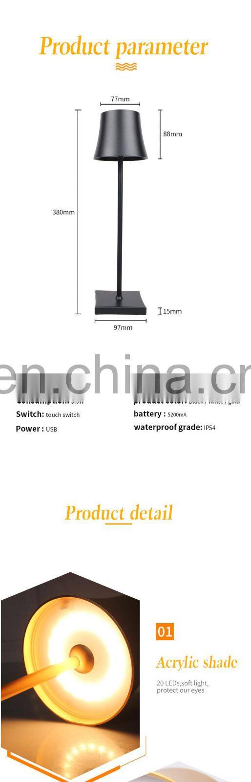 Modern Battery Restaurant Cordless Table Lamp Rechargeable for Restaurant