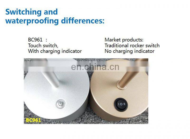 Noble Modern Spa Aluminum Rechargeable Battery Operated Wireless Led Hotel Table Lamp