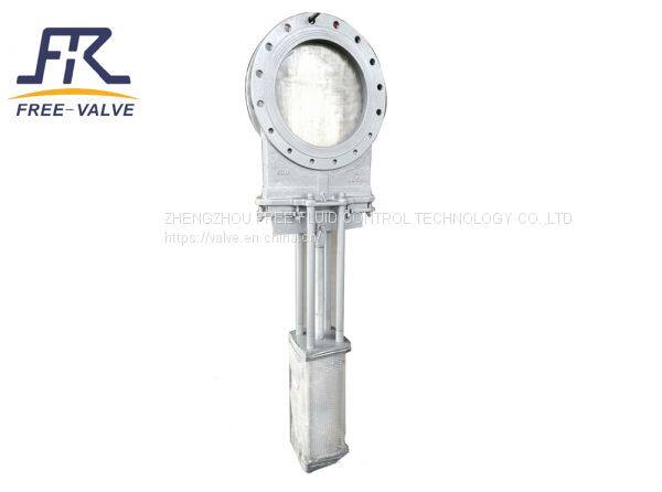FREE-VALVE’s Pneumatic Knife gate Slide Industrial Gate Valves are known as slurry gate valves. Its are unidirectional wafer knife edge gate valve used on industrial pipeline for on-off operation. The structure of body and seat eliminates clogging shutoff for flow with fine particles.The disc bottom of knife gate valve is made into a blade shape with the purpose to cut some soft materials such as fiber,pulp or wood pulp, and it also serves favorable closing and opening.