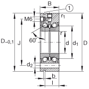 | d –0,005 | D –0,01 | B –0,25 | d1 | r min. | r1 min. | J | d2 | b | I | Da max. | da min. | t1 | For radial locking | For axial locking | Tightening torque MA Nm | m = kg | |||