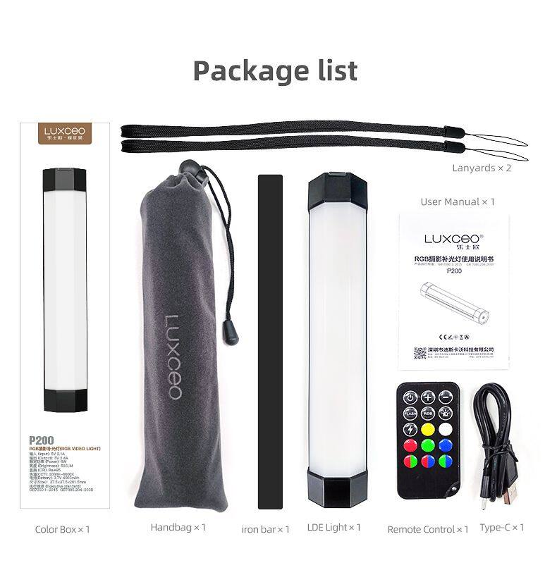 LUXCEO P200 LED video light with APP Control 360 ° Full Color is a brand new one design for photography. It also comes with a remote control. Built-in Strong Magnetic & high capacity 4000mAh battery & power bank function. It adopts transparent cylinder design, which makes the lighting range wider and comfortable hand feeling. With the advantages of simple operation, practical use and color diversity.