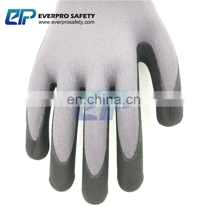 Everpro 15 Gauge Black Breathable Nitrile Foam Gloves With Gray Nylon And Spandex Liner