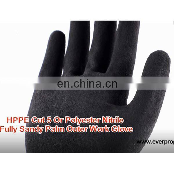 HPPE Liner Nitrile Sandy Dipped TPR Coated Cut Resistant Impact Resistant Gloves for Oilfield