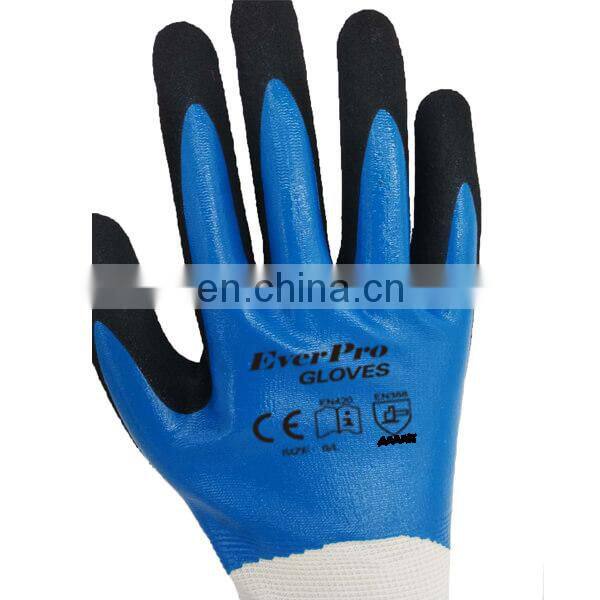 Oil Resistant Fully Coated Blue Nitrile Safety Work Gloves For Fuel Petro Chemical Work