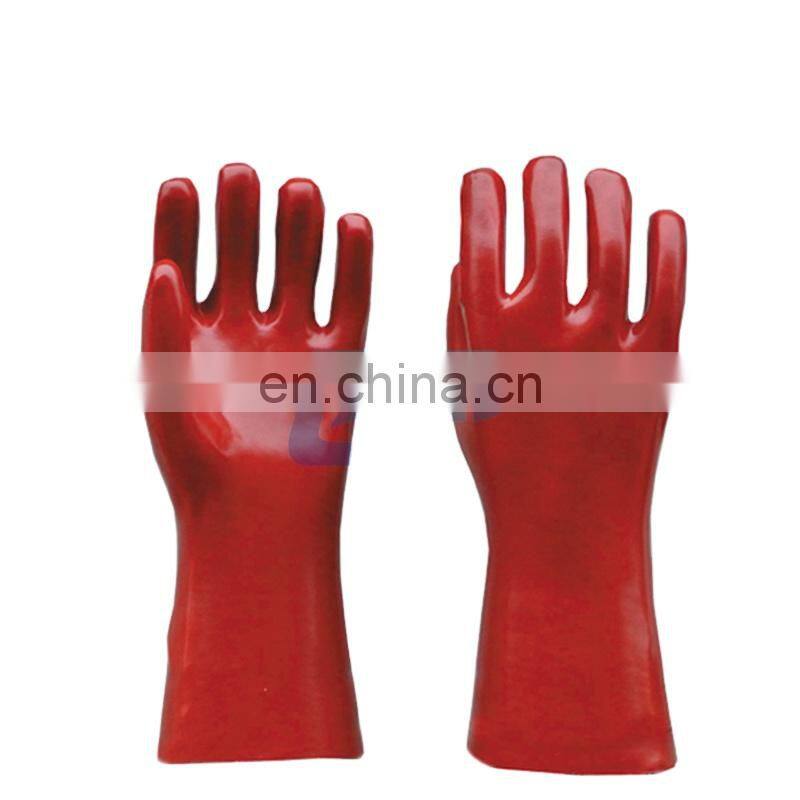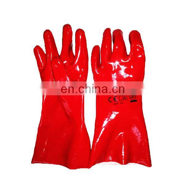 Oil & Chemical Resistant Hand Protection Cotton Interlock Knit Wrist Red PVC Gauntlet GlovesNegotiableMOQ: 1