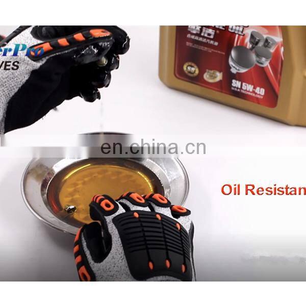 HPPE Liner Nitrile Sandy Dipped TPR Coated Cut Resistant Impact Resistant Gloves for Oilfield