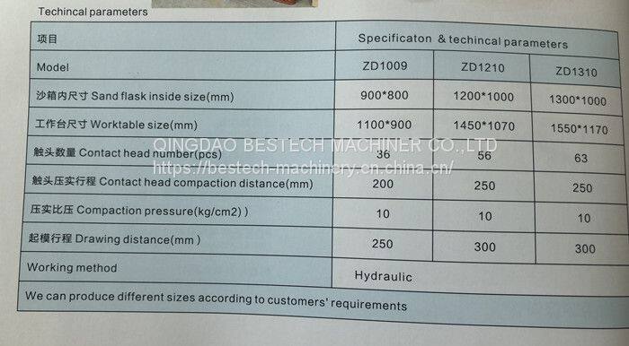 ZD hydraulic multi-contact molding machine belongs to a semi-automatic molding machine.Is through a number of hydraulic cylinder thrust compaction sand sand in the sand box, so that the sand get uniform uniform strength requirements, the use of jacking rod jacking sand box, to achieve the effect of the mold.This equipment is generally used in pairs. One machine is used for loading and the other machine is used for unloading.The hydraulic system adopts double pump control.When the contact is rapidly extended, the two pumps supply oil at the same time, and the high pressure pump is used for oil supply in real time.
