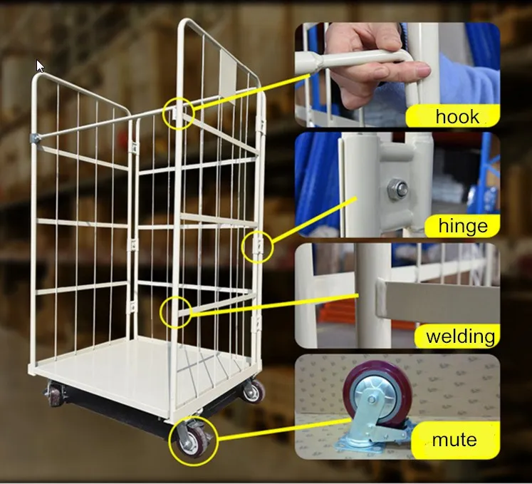 Three Sided Open Front Mesh Pallet Steel Foldable Storage Trolley Cart ,logistics Roll Cage