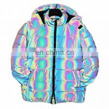 Custom High Visibility Color Changing Rainbow Trendy Nightlife Trench Coat Outdoor Casual Bubble Coat Reflective Jacket