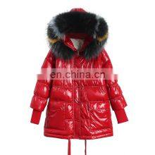 Shiny Fabric Heavy and Warm Duck Down Filling Water Resistant Jacket Colorful Faux Fur Puffer Coat for Ladies in Winter