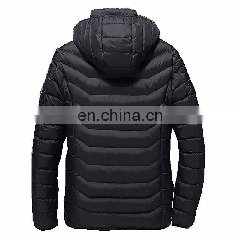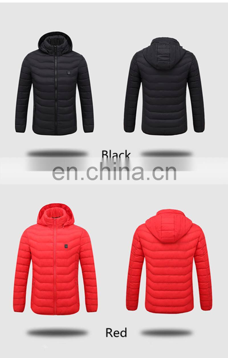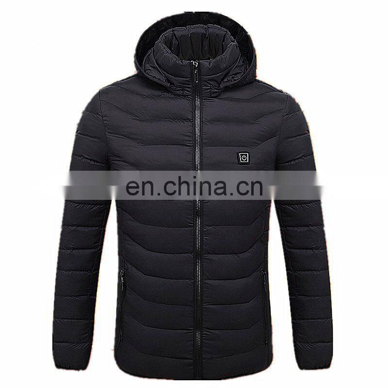 Washable Rechargeable 12V USB Men's Heating Electric Battery Heated Winter Down Hooded Jacket for Men