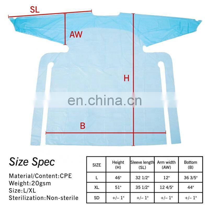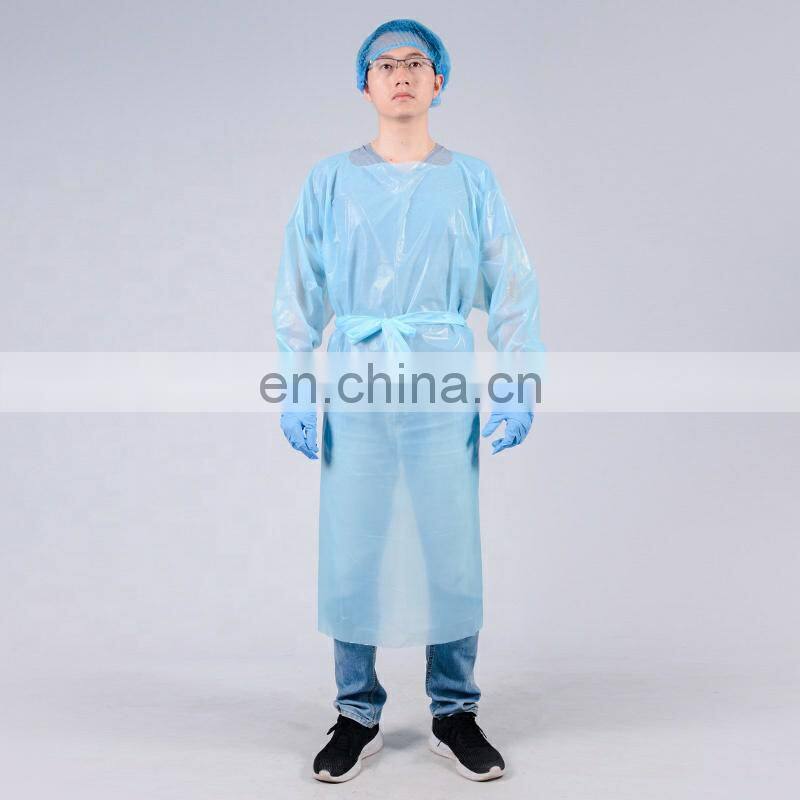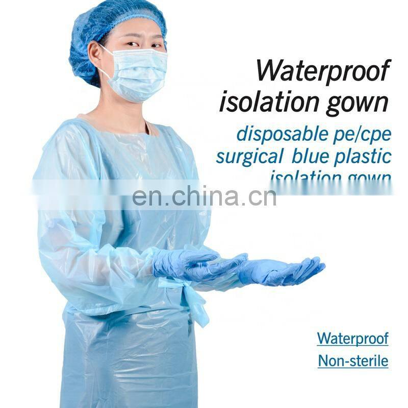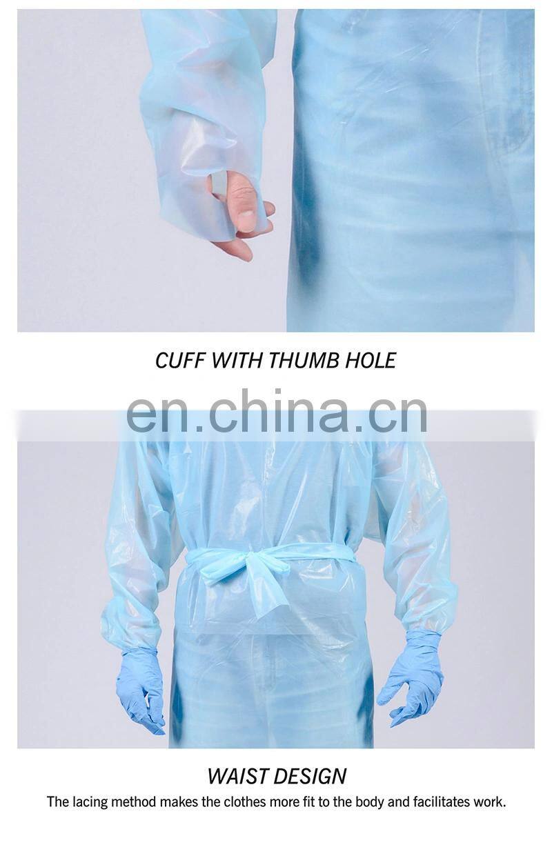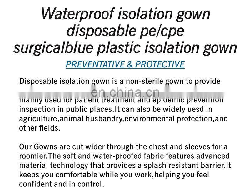 Disposable Isolation CPE Gown Disposable Blue Plastic Isolation Gown