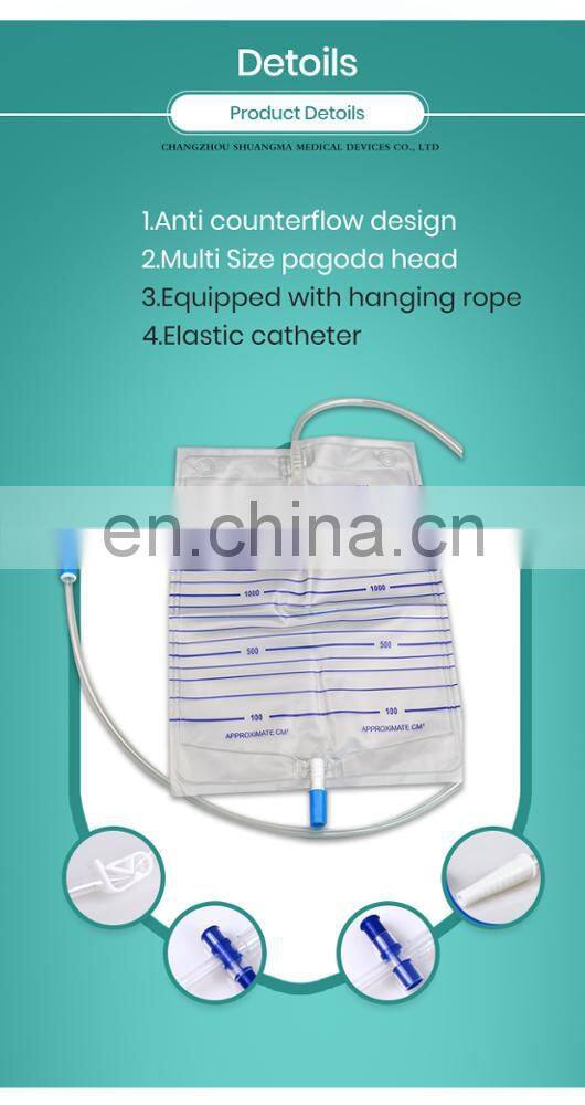 Medical Drainage Bag Anti Countercurrent Disposable Urine Collection Bag Cross Valve 2000ml