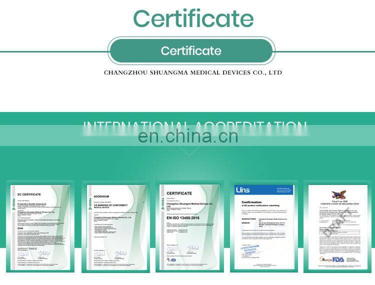 Changzhou Shuangma Medical Devices Co., Ltd. is located in eastern suburb of Changzhou, near Shanghai City. We are a modern enterprise specializing in producing disposable medical instruments.Shuangma is always devoted to developing and innovating hardware and software in our company. We have advanced management system, covering total area of 49000sqm, with one hundred thousand grade purifying workshop of more than 18000sqm. Shuangma mainly produces disposable syringes, hypodermic needles, disposable infusion sets, disposable urine bags, disposable vaginal speculums, disposable scalp vein sets, disposable transfusion sets, IV cannulas, transfusion bags, I.D. bracelets, colostomy bags, gloves and medical tubes.All of our products have CE and ISO certificates. By now, we have sold products to more than 50 countries in Europe, Africa, the Middle East, South America and Asia.