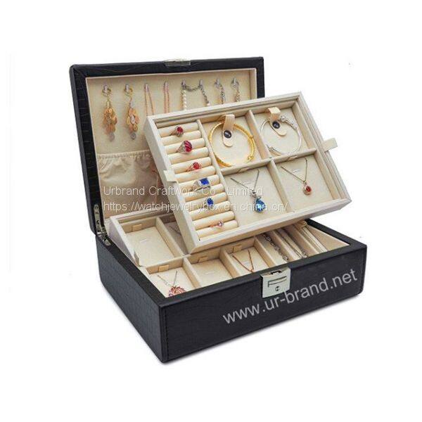 Black Pu Leather Jewelry Jewelry Organize Box Jewelry Storage Box With Lid Wholesale
