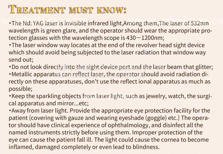 Nd yag tattoo euqipment adopts the Q-switch mode, which makes use of the instantaneous emmitted laser to break the pigment in ill structure. That's the laser instantaneous emit : centralized high energy emit suddenly, which makes laser of settled wave band instantaneous penetrate through cuticle to the ill structure in 6ns, and break the relevent pigments quickly.
