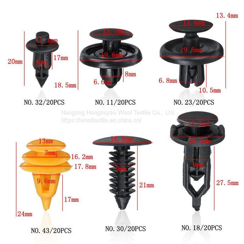 Commonly used for fitting side skirt, bumper, car fender, door trim panel, interior trim panel and various trim panels.