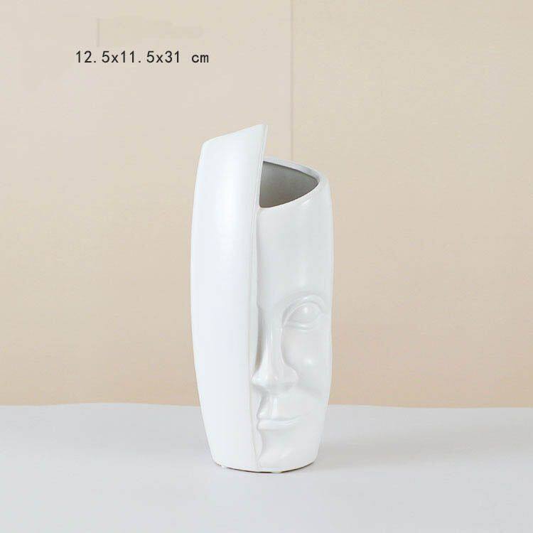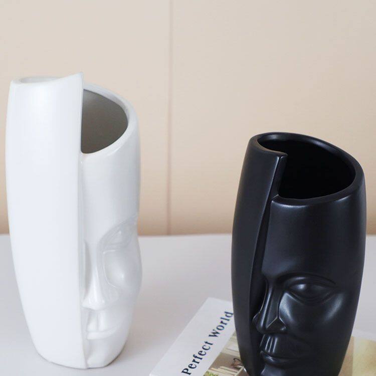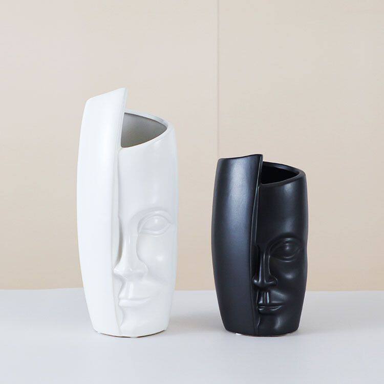 This ceramic vase is in the shape of a human face. It is made by hand through the color glaze process. It is characterized by its non-deformability and human face design.It comes in two colors, the small one is black and the large one is white.