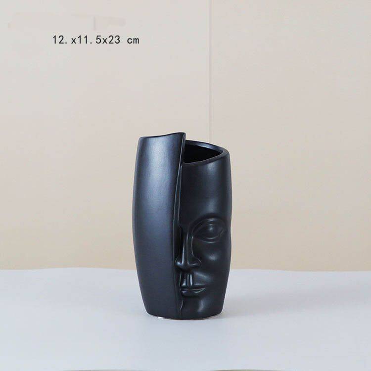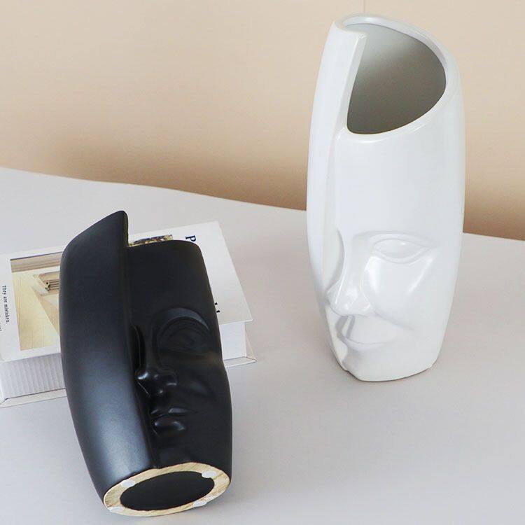 Creativity Matte White Black Face Ceramic Vase Decor Decoration, Flower Arrangement