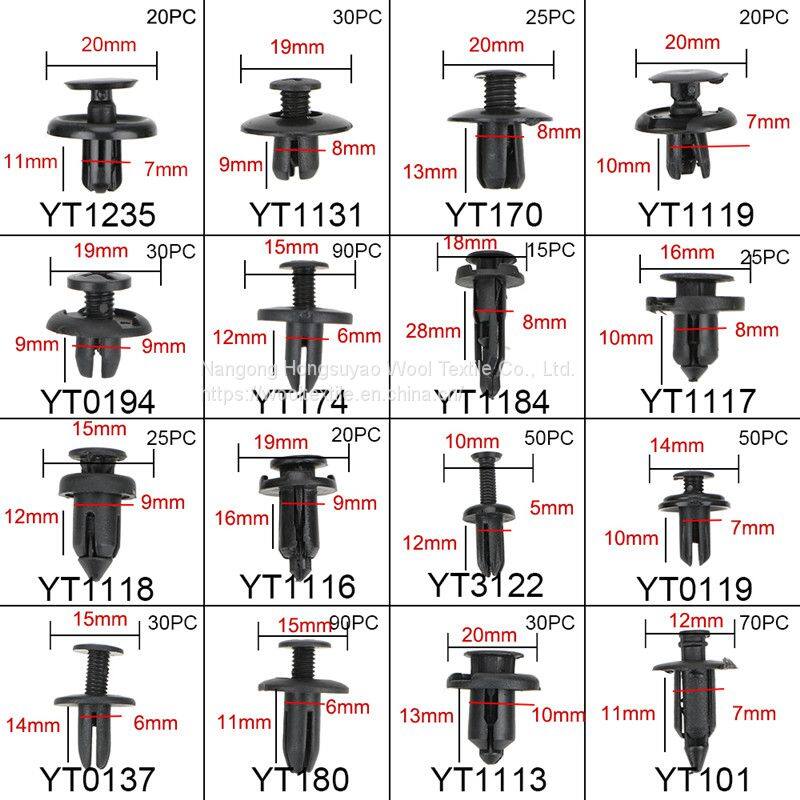 Commonly used for fitting side skirt, bumper, car fender, door trim panel, interior trim panel and various trim panels.