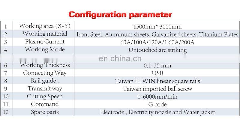 | 1530 Plasma cutting machine parameters |