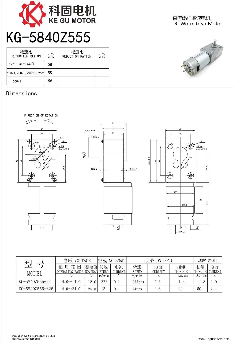 | Model Number | KG-1218FN20 | Type | Gear Motor | |