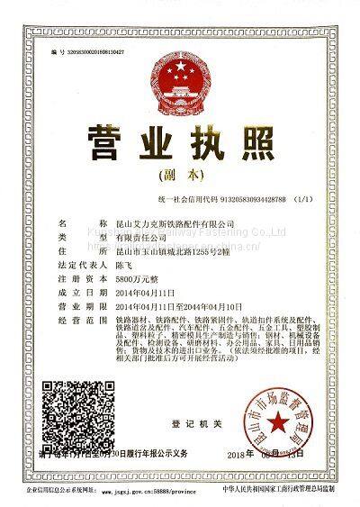 Company name: Kunshan Alex Railway Fastening Co., Ltd.