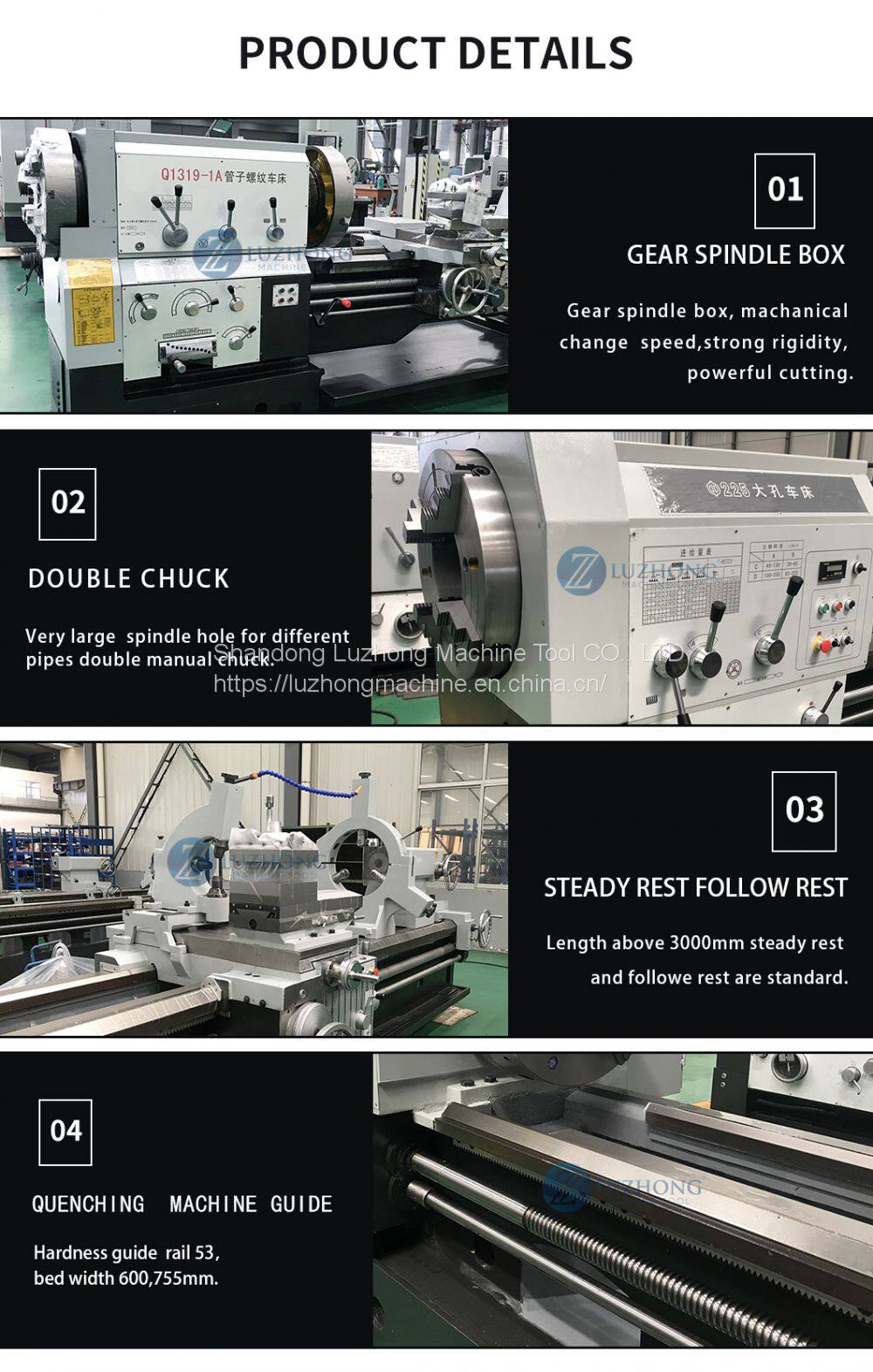 Q1325/Q1327 High Precision Chuck Big Hole Threading Horizontal Pipe Thread Lathe Machine