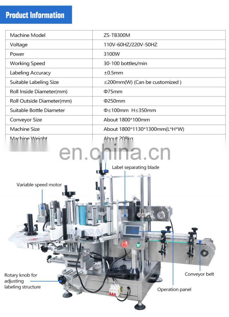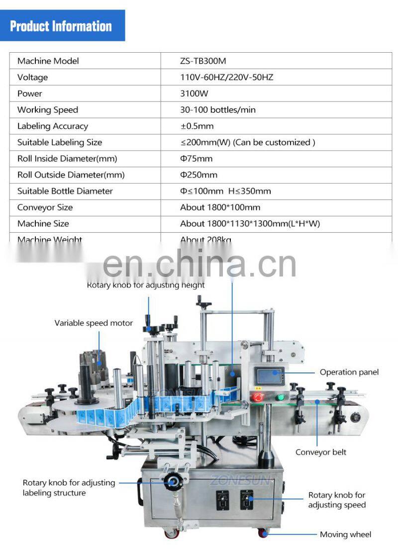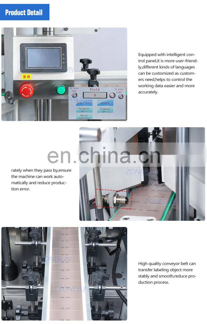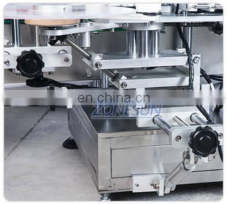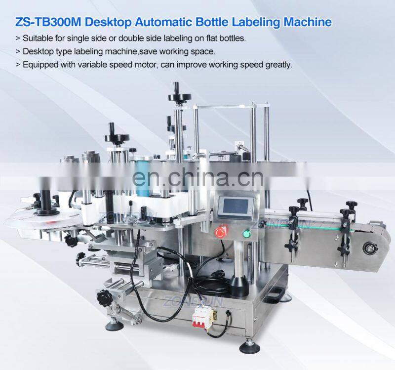 Home > Products > Labeling Machine > ZONESUN ZS-TB300M Automatic Stickers Flat Bottle Double Sided Labeling Machine For Square Bottles