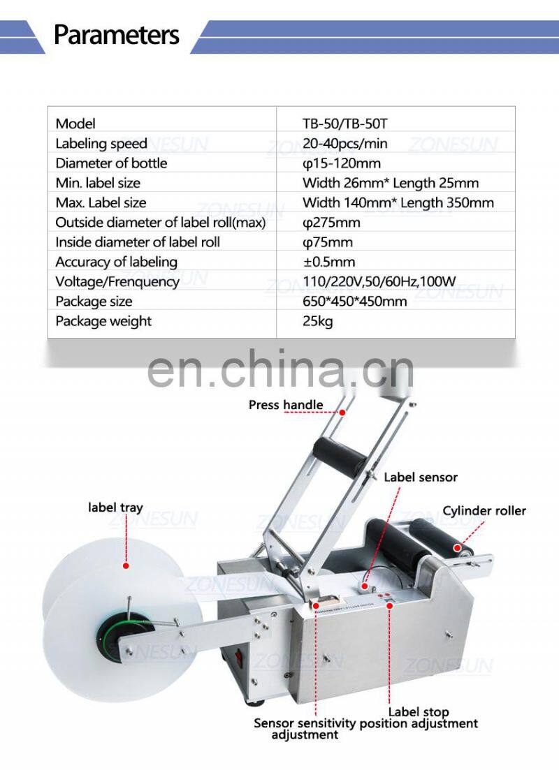 ZONESUN TB-190 Wine Double Side Sticker Round Water Semi Automatic Digital Bottle Labeling Machine For Plastic BottleNegotiableMOQ: 1