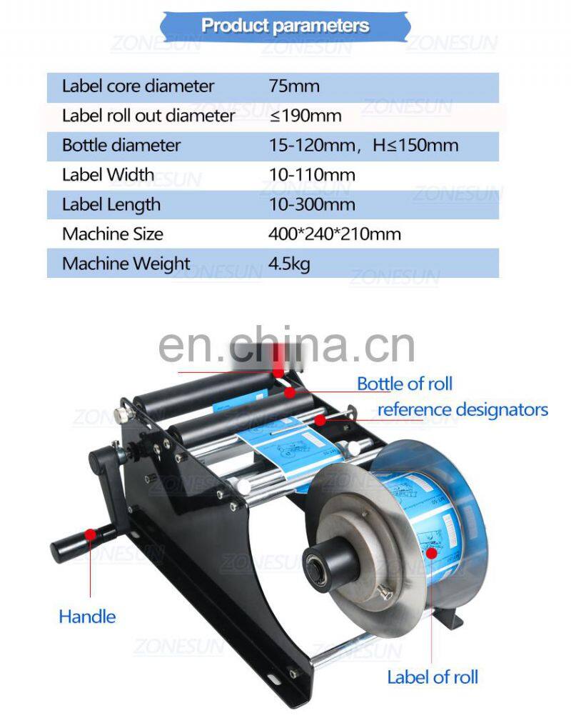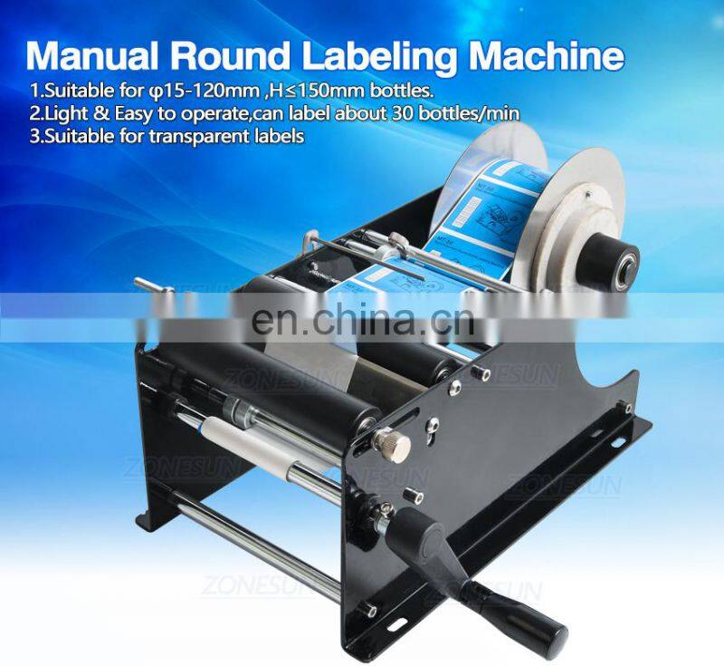 ZONESUN ZS-50 Manual Mineral Water Plastic Round Bottle Labeling Machine For Round Bottles Sticker Label Packing Machine