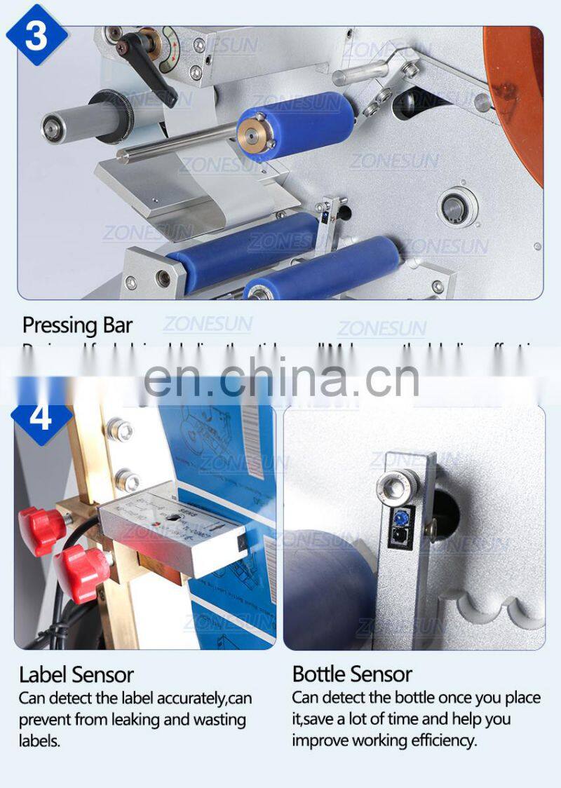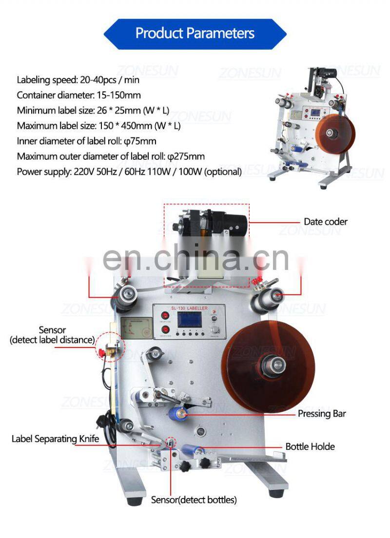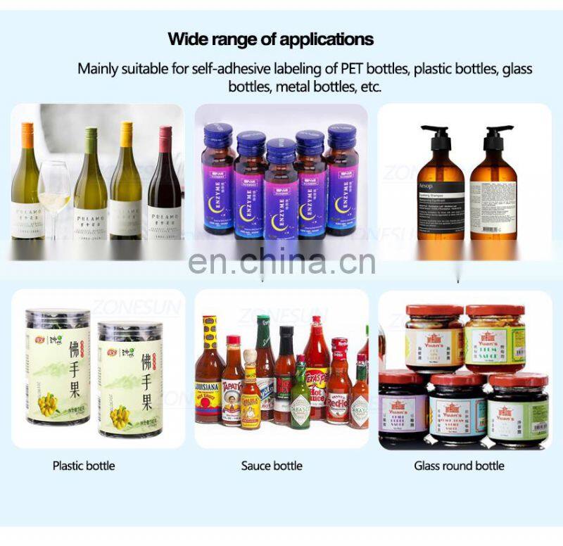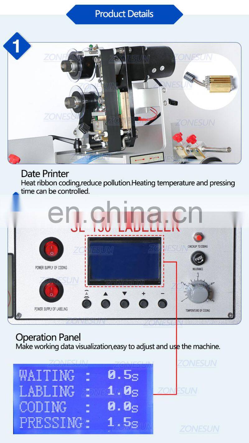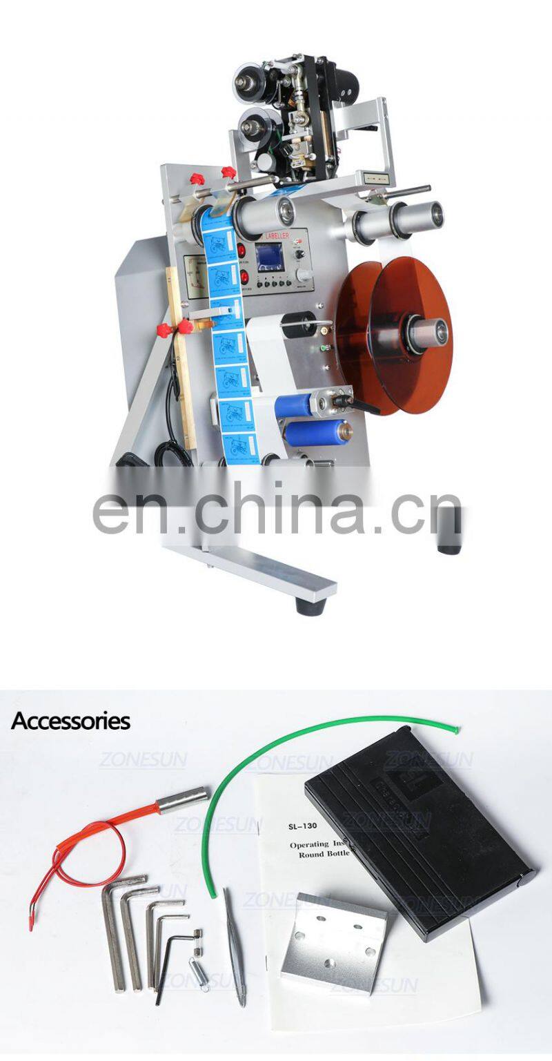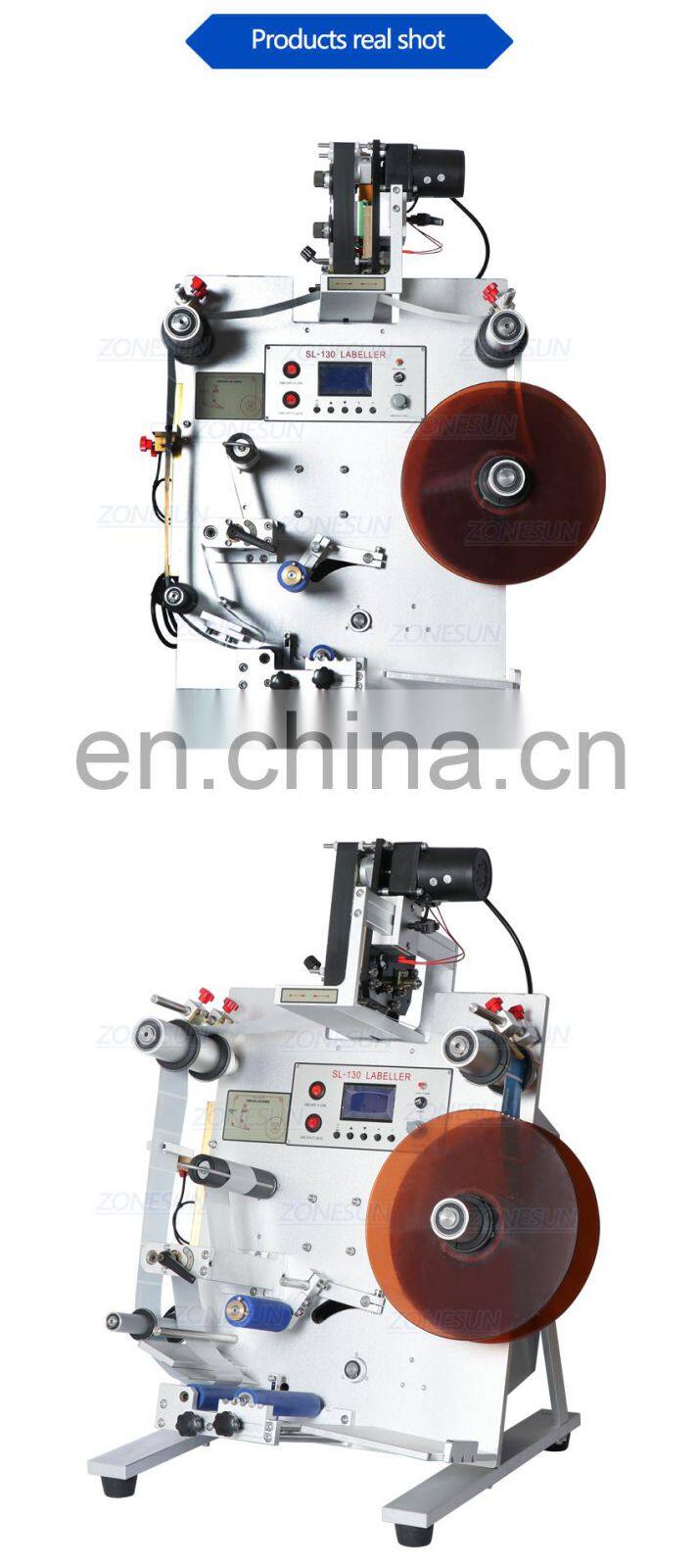 ZONESUN SL-130 Wine Double Side Sticker Round Water Semi Automatic Digital Bottle Labeling Printing Machine For Plastic Bottle