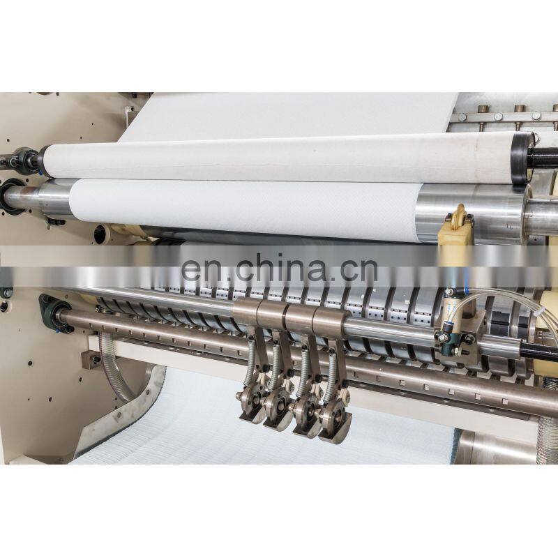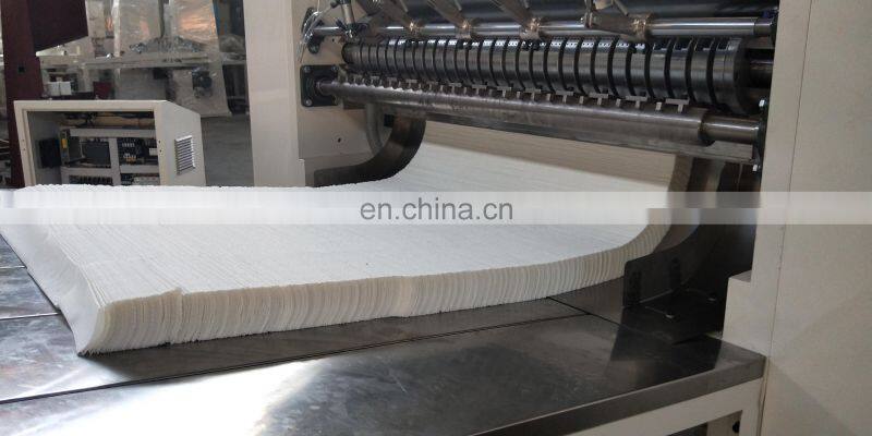 N folding hand towel machine process paper material after embossing, cutting off, inter-fold become N fold, the products are widely used in hotels, office and kitchen and so on, convenient health. This machine can folding, slitting, counting, with high speed, output orderliness.