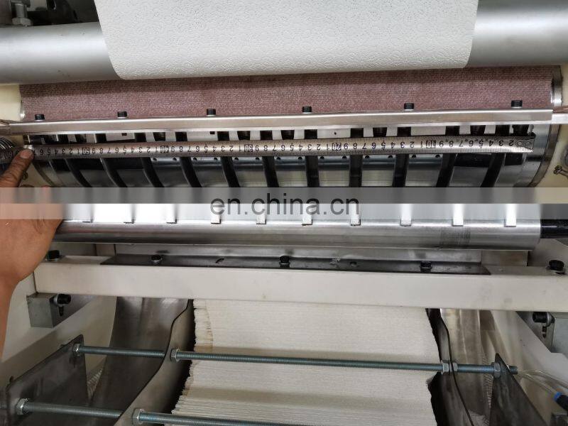 This machine is used for embossing and cutting off the towel paper. The folding of products is “V” type folding and you can draw it one by one. This kind of towel paper is used widely in hotel, office and kitchen etc, which is convenient and sanitation. We adopt original creation full vacuum absorption technology, the adaptability of raw material is so strong. This machine is for folding, slitting and counting with high speed and output orderliness.