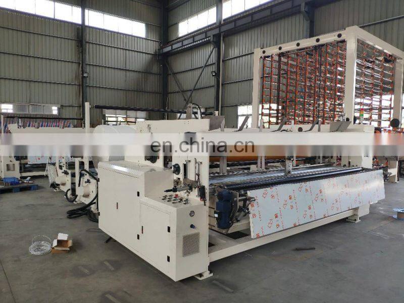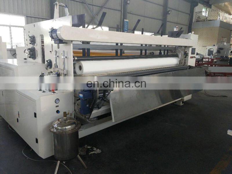 Automatic Wrapper Type High Speed Toilet Paper /Maxi Roll Rewinding Machine is for toilet paper roll/maxiroll processing. Machine have core feeding unit. Raw material from jumbo roll after full embossing or edge embossing, then perforation, end cutting and spray the tail glue become a log. Then it can working with cutting machine and packing machine to become the finished products. The machine is controlled by PLC, people operate it through touch screen, the whole process is automatic, easy to operate, lower the man cost. And Our machine can special-made according to clients' requirements.