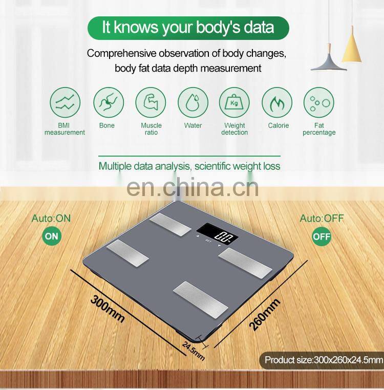 Amazon Hot Selling Bmi Muscle Body Fat Analysis Batteries Blue Tooth Electronic Weighing Scale