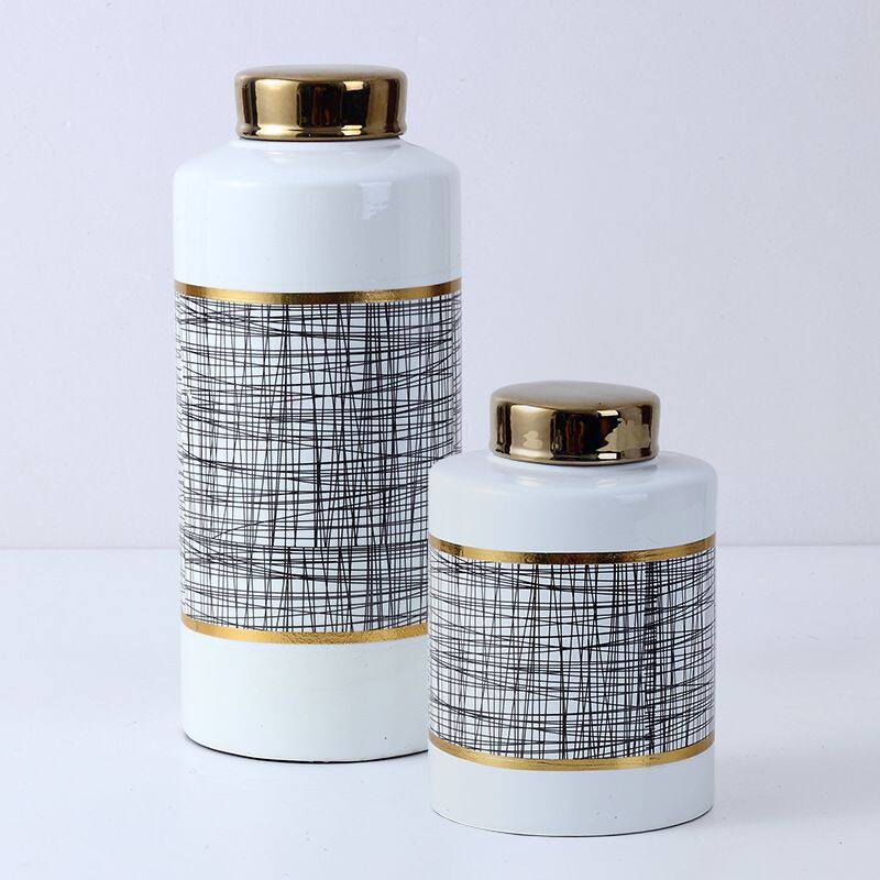 European Simple Style Black Column Pattern Ceramic Flower Vases Set With Lid For Home DecorationUS$ 25 - 28MOQ: 1 Piece
