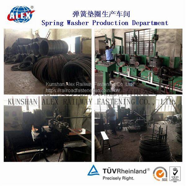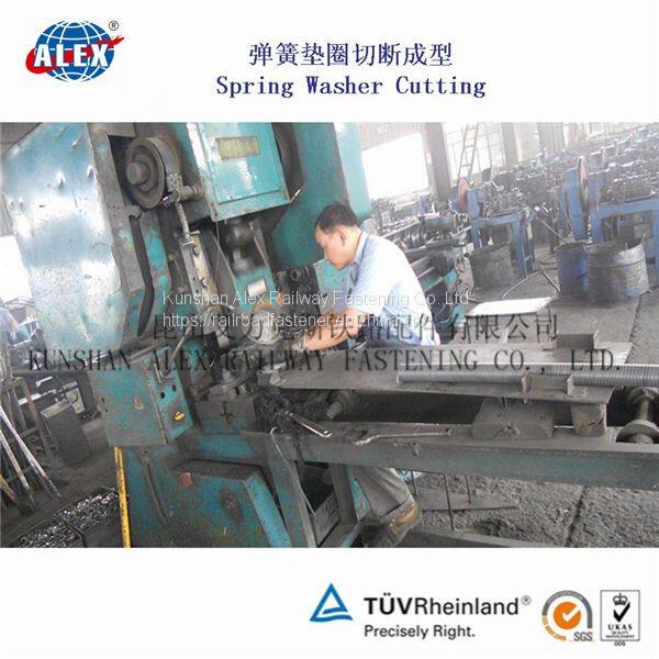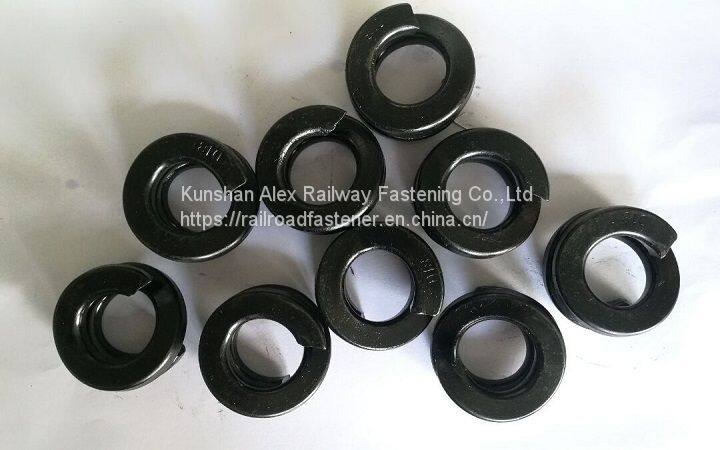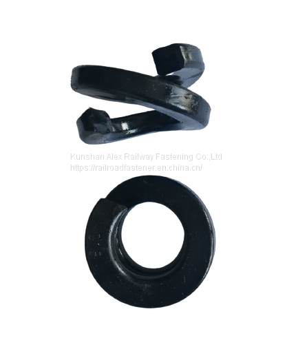 The washer can prevent the track bolt from shifting or getting loose through the intense vibrations caused by a passing train. Once the lock washer can engage the bolt, the bolt is then kept from slipping or twisting loose. This is the most common method for fastening a rail track for the rail fastening system.