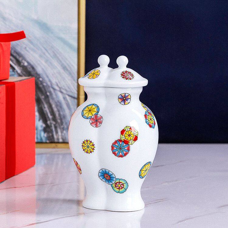 European Style Light Luxury Gild Red Yellow Ceramic Mushroom Bottle Decor For Hallway